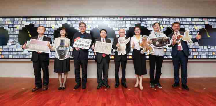 尊龙z6携手创利空间为故宫建置的智慧文物互动导览墙及轮播墙,,今日正式启用。。。(左四:尊龙z6新事业暨投资管理总部副总经理杨本豫、、、、右四:故宫博物院院长吴密察、、、、右三:太极影音董事长黄宝云)