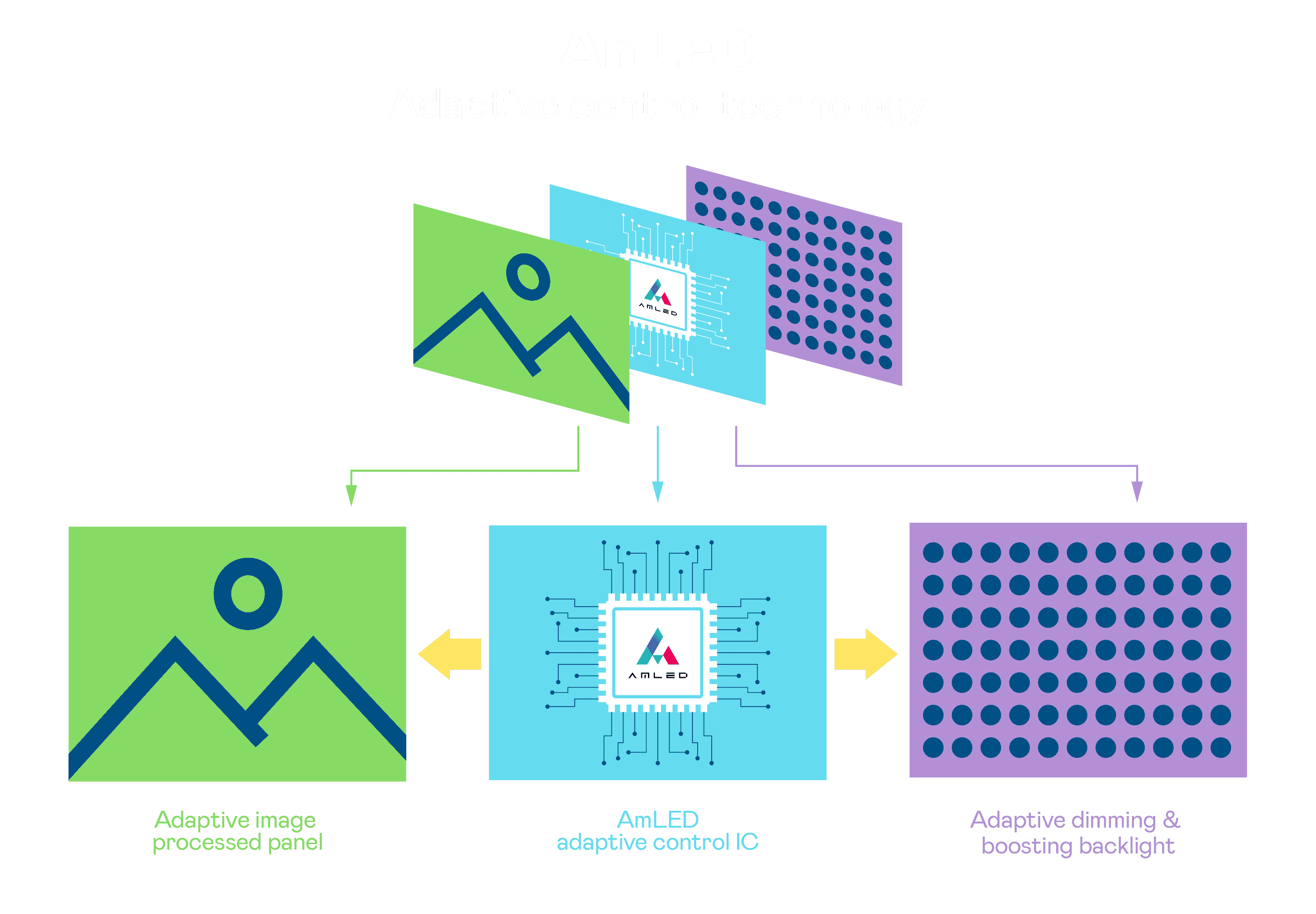 透过动态影像处理和 Mini LED 背光模组的动态对比及峰值亮度调变,,AmLED 显示技术精准细致的局部调光效果达到超过 1,000 nits 的超高亮度表现,,亮部更明亮、、、暗处更深邃,,,,呈现真实黑色中的亮度以及平滑灰阶,,,,打造出具层次分明的精致光影细节。。。。