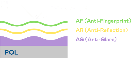 A.R.T.尊龙z6光电发展出独家的表面处理跟多层镀膜技术,,让外部光线照射到显示器表面时所产生的反射光大幅降低。。 |